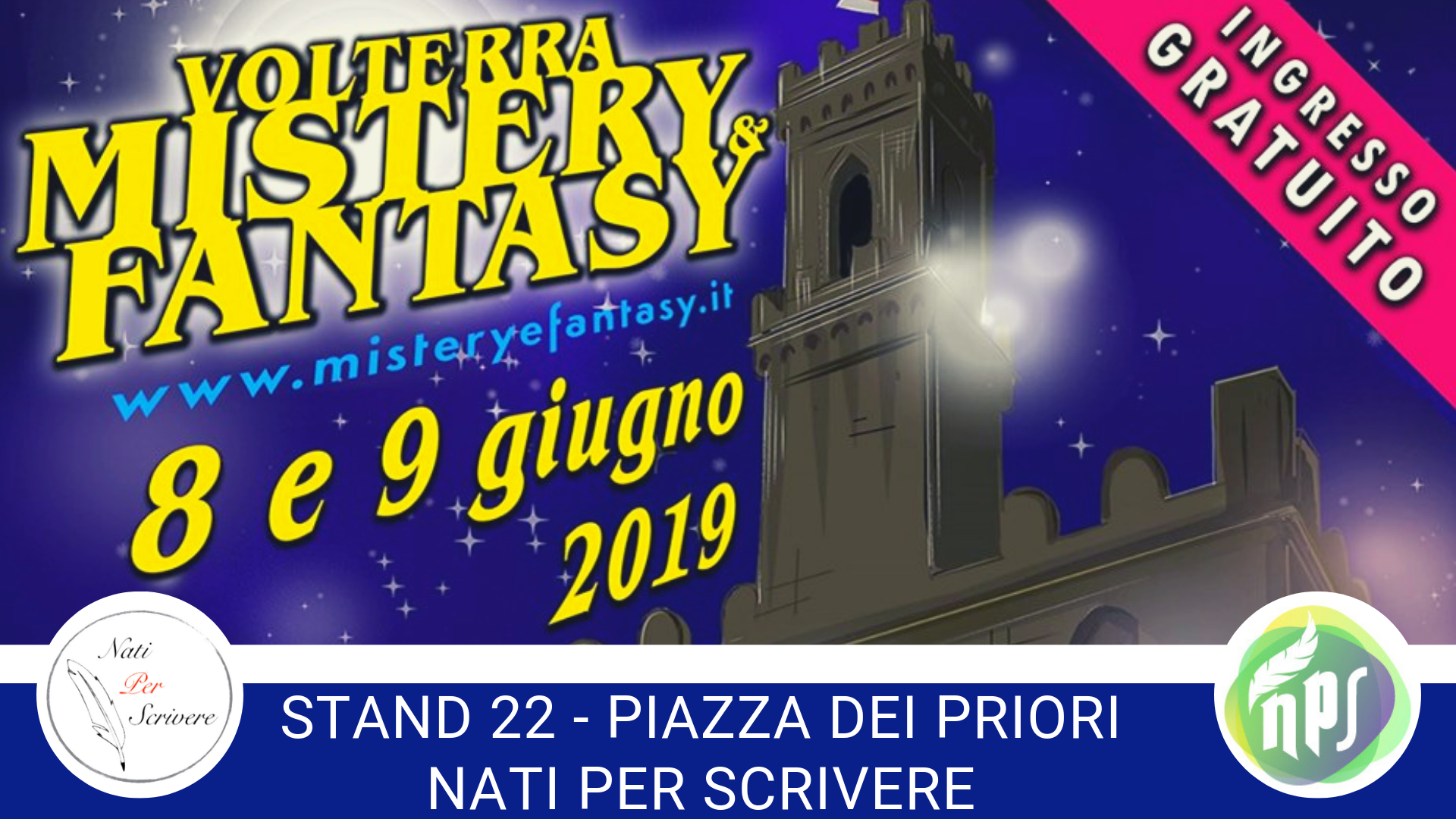 NPS Edizioni, marchio editoriale dell'associazione viareggina Nati per scrivere, volto a valorizzare gli scrittori italiani, torna a Volterra Mistery & Fantasy, per partecipare alla nuova edizione della festa del fantastico che animerà le strade della cittadina toscana l'8 e il 9 giugno 2019.