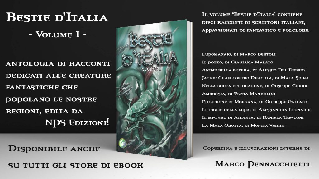 Il volume 1 di "Bestie d'Italia" contiene dieci racconti di scrittori italiani, appassionati di fantastico e folclore: Lupomanaio, di Marco Bertoli; Il pozzo, di Gianluca Malato; Anime nella bufera, di Alessio Del Debbio; Jackie Chan contro Dracula, di Mala Spina; Nella bocca del dragone, di Giuseppe Chiodi; Ambrosia, di Elena Mandolini; L'illusione di Morgana, di Giuseppe Gallato; Le figlie della lupa, di Alessandra Leonardi; Il mistero di Atlanta, di Daniela Tresconi; La Mala Grotta, di Monica Serra